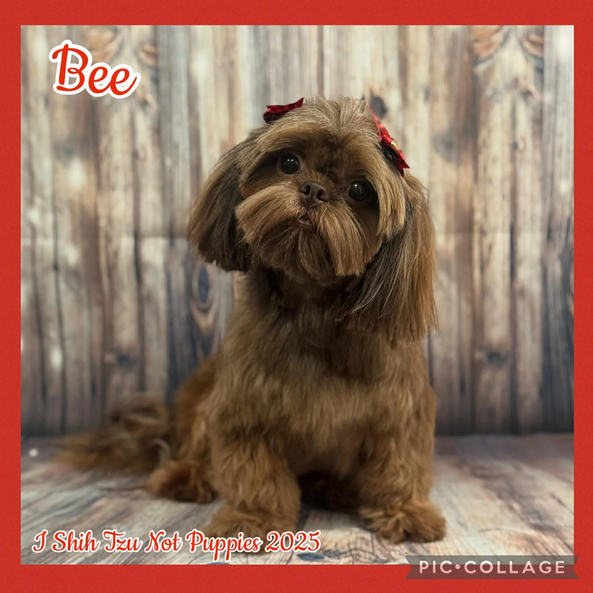 Bee or Baby Bee is our 4th generation of liver shih tzu here! Bee is the great granddaughter of Gidget, the granddaughter of Coco Chanel and the daughter of Lexi. Bee is a beautiful rich red liver. This gorgeous rich red comes from her grandfather, Dakota Ray Ortiz! Bee loves to play with Liberty and Stella and she absolutely loves the snow! Bee is 11 pounds and has had 3 litters of 7 puppies in each litter!