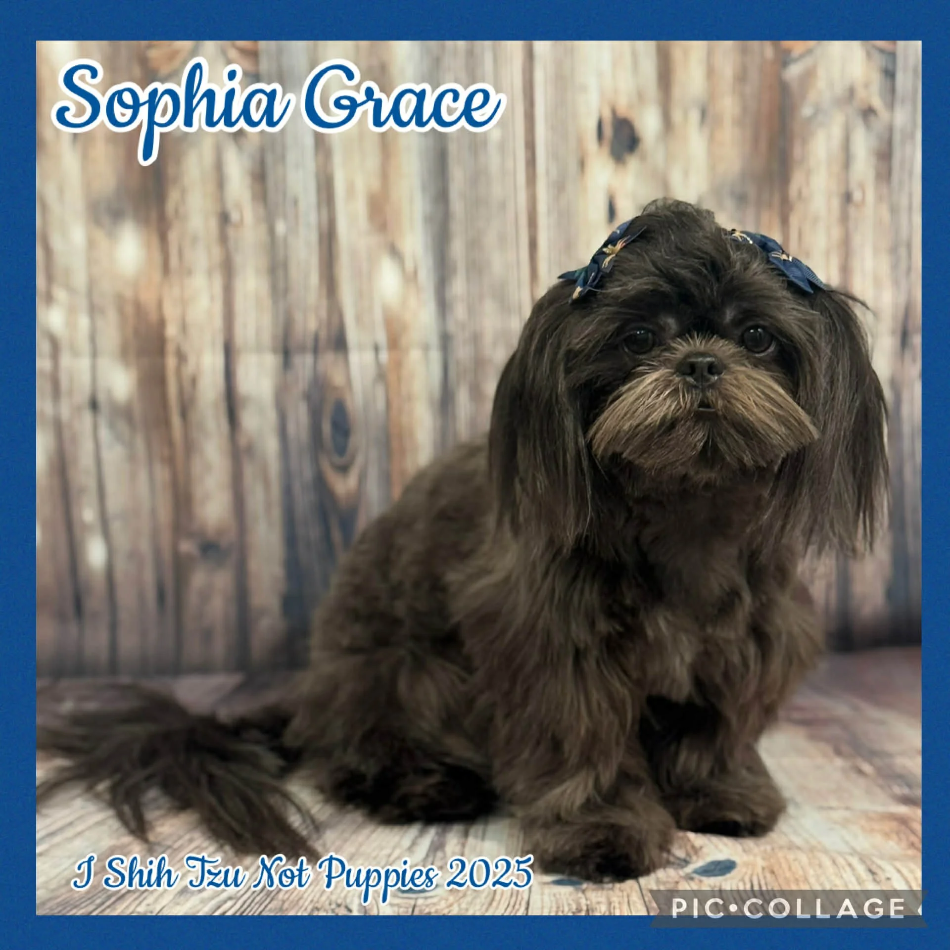 Sophia Grace is what this girl gets called when she’s taking her sweet time to come inside, otherwise we call her Sophie. Sophie is the daughter of Mara, Mara is the daughter of Leah x Lincoln, Sophia is a blue shih tzu. We are hoping for more blues and/or lavenders at the beginning of 2026.
